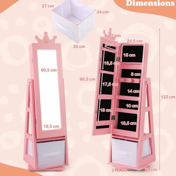 Bli först med att recensera ”COSTWAY Sminkbord>Smyckesskåp för barn, fristående spegel med stor förvaringskapacitet och vridbar bas, rosa” Avbryt svar