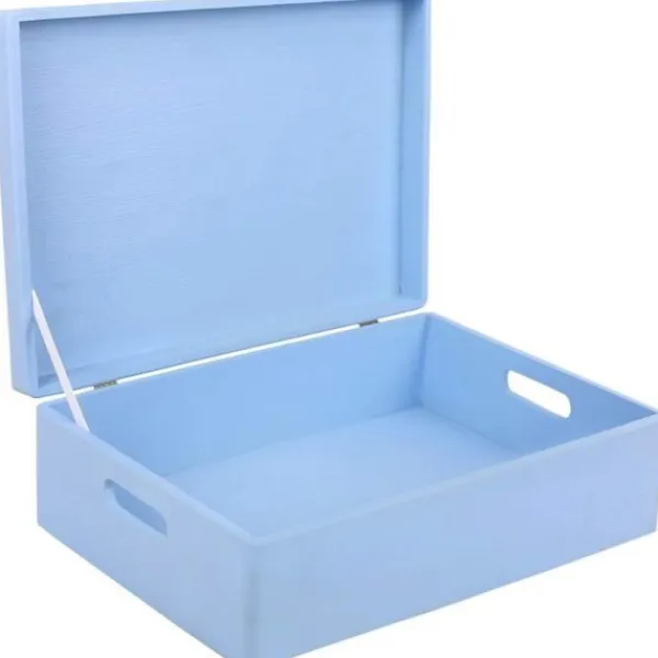 Upptäck denna blå förvaringslåda i trä att dekorera från märket Creative Deco. Med sina mått på 40 x 30 x 14 cm är den perfekt för att förvara och organisera dina dokument, värdesaker, leksaker, kläder, accessoarer och smycken. Denna låda är gjord av massivt, obehandlat trä och är lätt och av hög kvalitet.