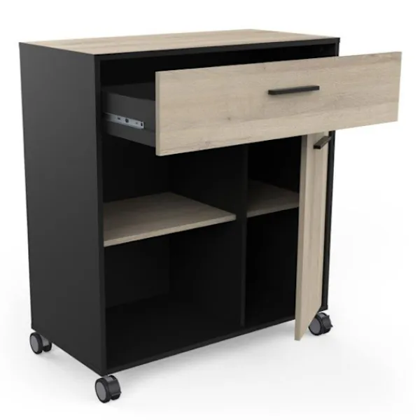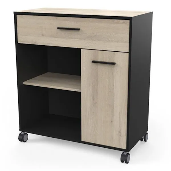 Köket är funktionellt med serveringsvagnen Mint som erbjuder många förvaringsutrymmen för enkel och praktisk organisering. Serveringsvagnen har hjul med broms för ökad stabilitet. Tillverkad i Frankrike. Monteras av användaren. Produktens mått: L.81 x b. 39,6 x H 90,3 cm. Produktens vikt: 25,55 kg. Material: spånskivor. Märke: Demeyere.