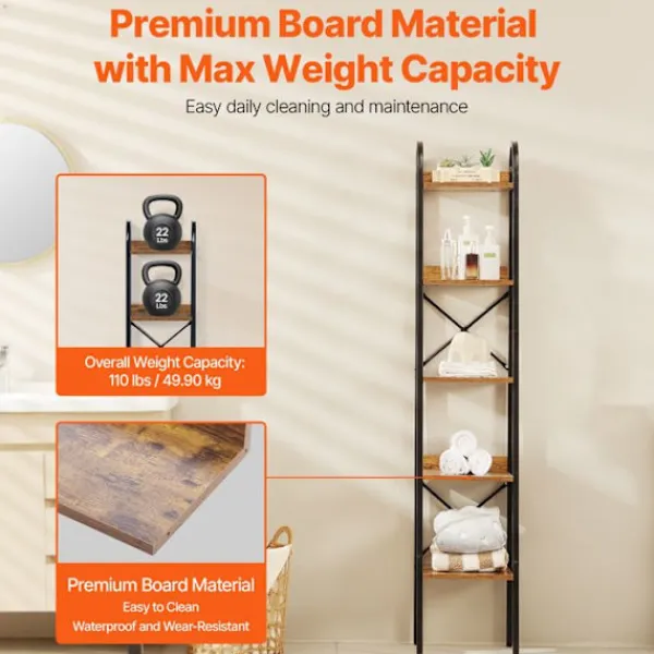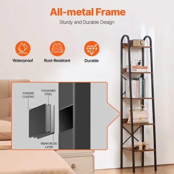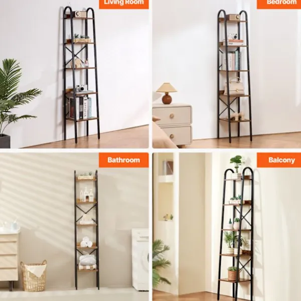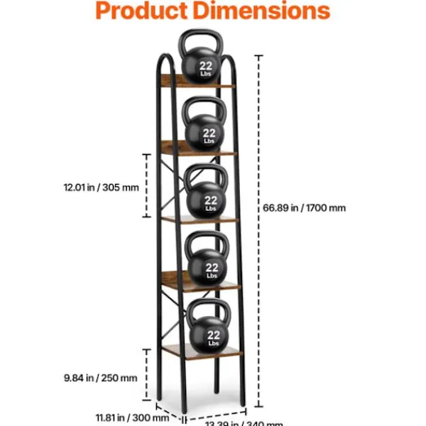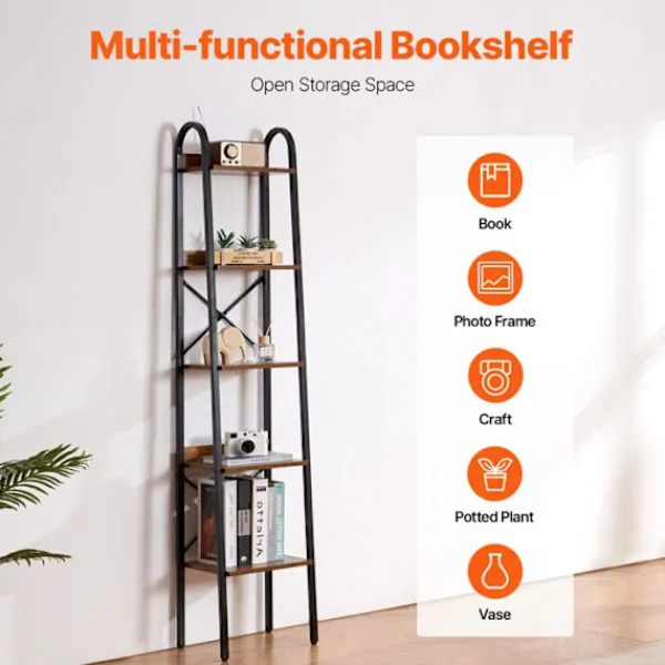 Detta metallbibliotek DUOKU i industriell stil erbjuder 5 nivåer för optimal förvaring. Med måtten 30 x 34 x 170 cm är det idealiskt för trånga bostadsutrymmen. Dess viktkapacitet på 110 lb (49,90 kg) och dess eleganta design gör det till ett perfekt val för ditt vardagsrum.
