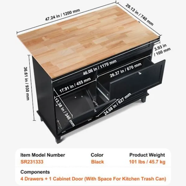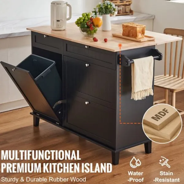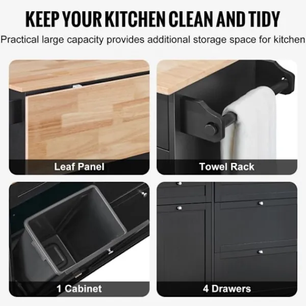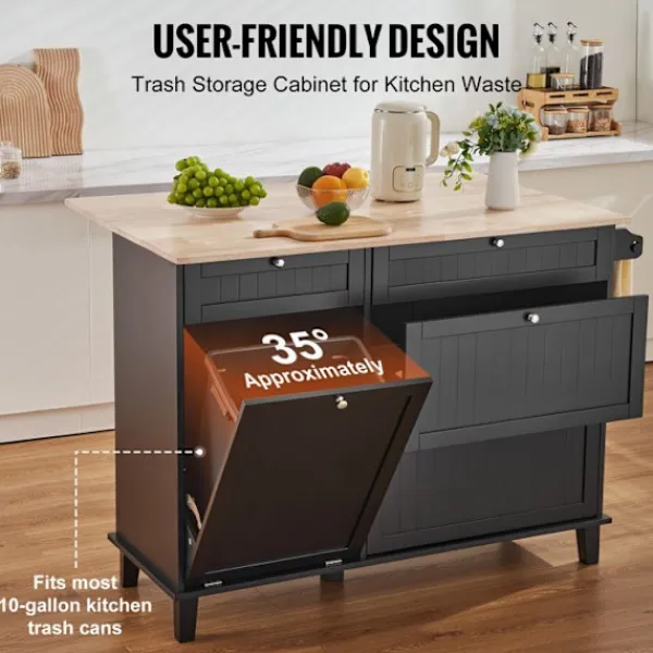 Denna DUOKU köksö-vagn förenar funktionalitet och stil. Med sina mått på 1280 x 740 x 930 mm erbjuder den ett praktiskt förvaringsutrymme med ett nedfällbart sopskåp på 10 gallon. Dess finish i trä och svart passar perfekt in i ett modernt kök.