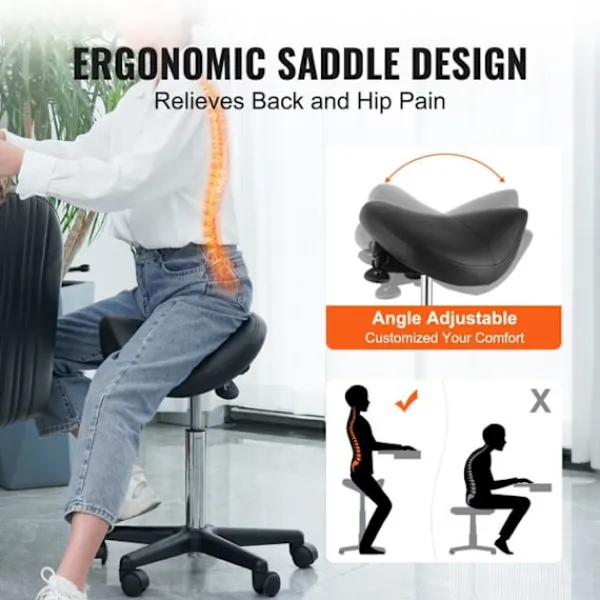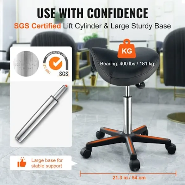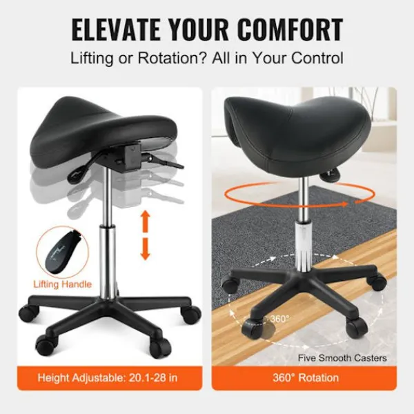 Denna DUOKU sadelstol är designad för komfort och hållbarhet. Med en viktkapacitet på 181 kg är den justerbar i höjd mellan 510 och 710 mm. Dess PU-läderklädsel och nylonhjul säkerställer en smidig och behaglig användning. Perfekt för inomhusbruk, passar den utmärkt i ett samtida kontor.