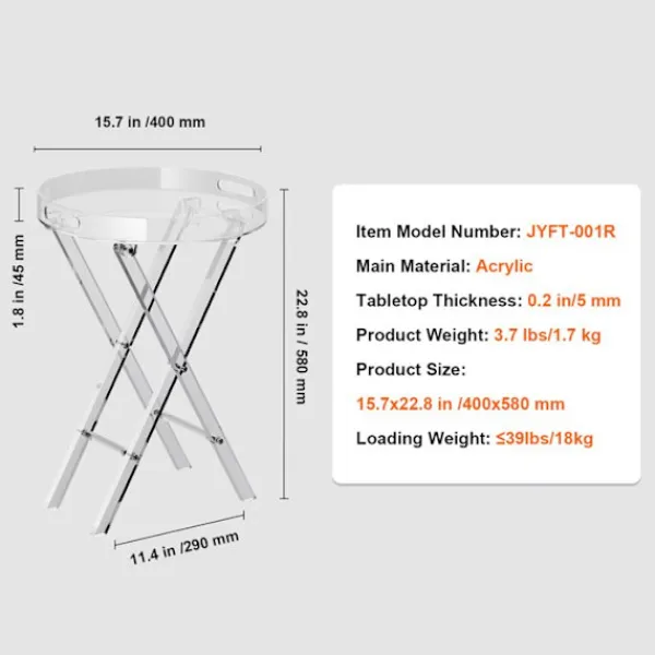 Detta sidobord i klart akryl från DUOKU mäter φ400 x 580 mm. Med en modern design och ett vikbart X-ställ är det perfekt för vardagsrummet. Dess struktur i plastkomposit klarar upp till 10 kg samtidigt som det är lätt (1,7 kg). Perfekt för dina kaffedrycker och andra drycker.