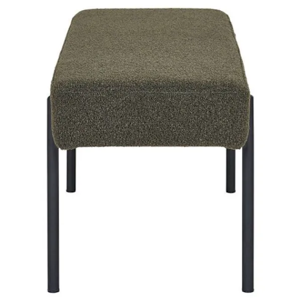 Denna bänk i mörkgrön bouclétäckning är en karaktärsfull möbel som subtilt förenar elegans och modernitet. Med måtten 100 x 36 x 42,5 cm passar den med finess i ett vardagsrum, en hall eller även vid foten av sängen, och tillför en touch av distinktion till rummet. Dess bouclétäckning i djupa nyanser utmärker sig med en rik textur, medan stoppningen i skum är välgjord.