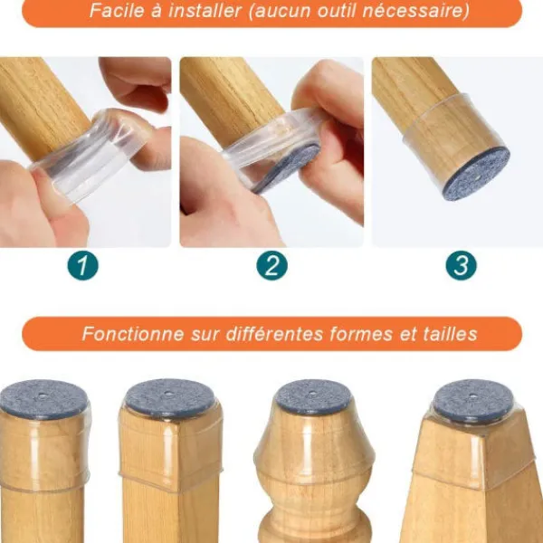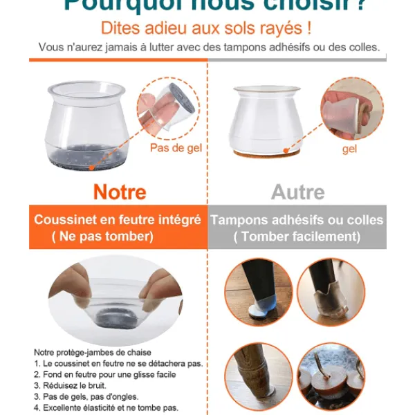 【Lätt att använda】 Sätt bara reglagen över stolsbenen så sitter de tätt för att stanna på plats! Du kommer aldrig behöva kämpa med att självhäftande kuddar faller av eller att lim fastnar på golvet.