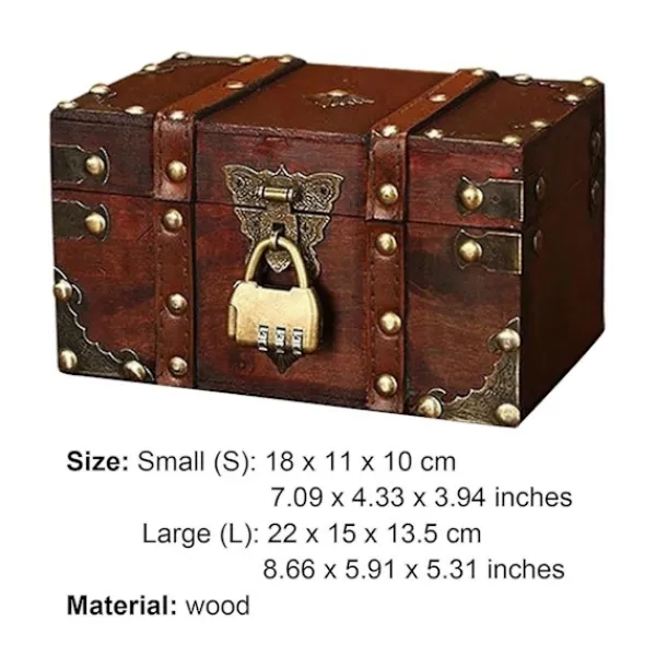 Tillverkad av handgjort och pressat flerskiktigt miljövänligt trä, smyckeskistan med ett antikt kopparfärgat lås kan ge ditt hem en klassisk atmosfär. Du kan förvara smycken, leksaker, kosmetika, mobiltelefoner, hörlurskablar, sladdar, kontorsmaterial och annat. Låsbar design, säker och praktisk. Tillverkad av trämaterial, den är hållbar. Det finns två olika storlekar på förvaringslådan att välja mellan. Den passar för vardagsrum, sovrum, arbetsrum och så vidare.Produktnamn: FörvaringsbehållareMaterial: TräStorleksdetaljer:S: 18 cm x 11 cm x 10 cm/ 7,09 tum x 4,33 tum x 3,94 tum (ungefär)L: 22 cm x 15 cm x 13,5 cm/ 8,66 tum x 5,91 tum x 5,31 tum (ungefär)Noteringar:På grund av skillnaden i ljus och skärminställning kan objektets färg skilja sig något från bilderna. Tillåt en liten dimensionskillnad på grund av olika manuella mätningar.Paketet innehåller:1 x Förvaringsbehållare