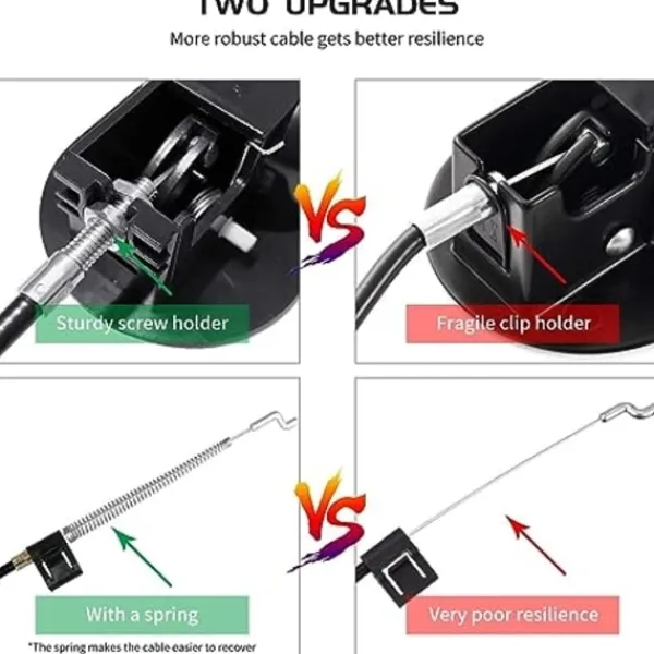 2-pack Recliner Ersättningsdelar, Hållbar Reclinerstol Släpphandtag med Recliner Dragkabel, Reparations- och Ersättningsdelar Kompatibla med de flesta Möbler av Recliner, Soffa, Soffa Grupp. 【Recliner Reservdelar:】 Perfekt för att ersätta slitna och trasiga reclinerhandtag och kablar. Kompatibel med de flesta stora recliner-soffa-märken, såsom Ashley, Lazy Boy och mer. (OBS: Mät dina ursprungliga handtag och kablar för att säkerställa kompatibilitet innan du köper) 【Hållbart Tilt Släpphandtag Kabel】: Vårt draghandtag och tiltkabel är tillverkade av högkvalitativa material, testade för att tåla slitage, vilket ger långvarig hållbarhet och styrka. Längre livslängd än OEM-delar. 【Senaste Design】: Fjäder tillsatt till slutet av tiltkabeln för snabbare återhämtning under användning. Metallklämman ersatt av två skruvar ovanpå kabeln för en starkare och mer flexibel anslutning till handtaget. Justera helt enkelt skruvarna ovanpå kabeln för att ändra den exponerade längden och passa möblerna perfekt. 【Reparera dina recliners enkelt】: Vårt draghandtag och kabel kan installeras snabbt på 3 minuter eller mindre. Få din recliner att fungera igen utan att behöva några manuella färdigheter! Allt du behöver är en skruvmejsel – inget behov av nål-näsa tång. Titta på vår installationsvideo eller kontakta oss för hjälp.