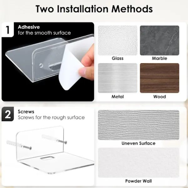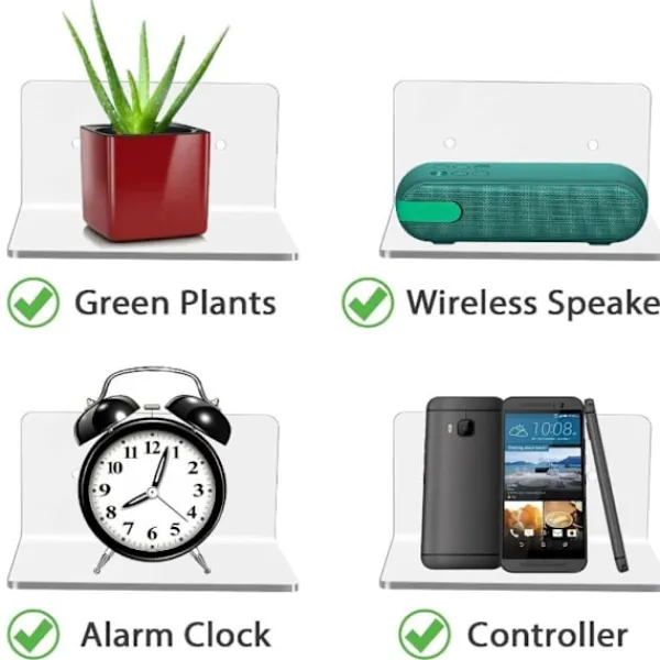 Färg: transparent 100% helt ny och hög kvalitet! Speciell funktion: Hållbar Storlek: som visas Namn: Små Akrylhyllor Funktion: Multifunktionella Akrylhyllor: Lägg till extra hyllutrymme, perfekt för att visa mini-fotoramar, leksaker, små växter, ornament och mer. Hög kvalitet: Våra flytande hyllor är gjorda av högkvalitativ akryl, som inte är lätt att rosta eller missfärga och kan användas under lång tid. 2 metoder för att installera: Du kan installera denna lilla flytande akrylhylla genom att skruva eller med självhäftande remsor enligt dina behov. Tillbehör ingår i paketet. Enkel installation: Lätt att installera på några minuter med installationsmanualen. (Produkten levereras med en film på ytan för att förhindra repor, vänligen riv av den försiktigt efter att du har mottagit varan.) Paketet innehåller: 4 × Små Akrylhyllor Obs: 1. Det är 2-3% skillnad enligt manuell mätning. Kontrollera storleken noggrant innan du köper varan. 2. Observera att en liten färgskillnad bör vara acceptabel på grund av ljuset och skärmen.