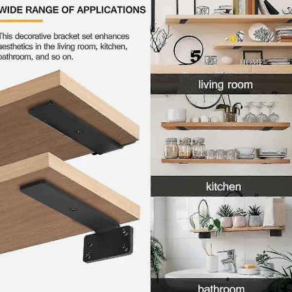 [Kraftig & 90 graders vinkel] Varje par av de 1/5-tums tjocka konsolerna, tillverkade av högkvalitativt järn, kan bära upp till 90 kg när de används med de medföljande höghållfasta skruvarna. Den exakta böjningen säkerställer en perfekt 90 graders vinkel, vilket förhindrar lutning. [Dold & försänkt design] Med en höjd på endast 4 cm kan konsolen enkelt döljas mellan väggen och hyllan. Den är designad för både uppåt & nedåtvänd användning, medan den försänkta funktionen garanterar smidig borrning och osynliga skruvar. [Matt finish] Den mattsvarta finishen på dessa gjutjärnshyllkonsoler blandar modern elegans med industriell estetik. Dessa monteringskonsoler fungerar som dolda hyllstöd och erbjuder en texturerad yta för rostbeständighet och varaktig prestanda. [DIY förvaringsställ] Detta set innehåller 6 dekorativa L-konsoler för trä, perfekta som hållare för DIY väggmonterade öppna hyllor. Mångsidiga i användning, de är lämpliga för kök, badrum, sovrum, kontor, garage, studierum och toaletter. Färg: svart Material: järn Storlek: Längd: 20 cm Paketets innehåll: 6 x Kraftiga flytande hyllkonsoler Endast ovanstående paketinnehåll, andra produkter ingår inte. Obs: Ljusreflektion och olika skärmar kan göra att färgen på föremålet på bilden skiljer sig lite från den verkliga varan. Det tillåtna mätfelet är +/- 1-3 cm._NANA