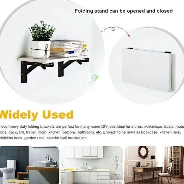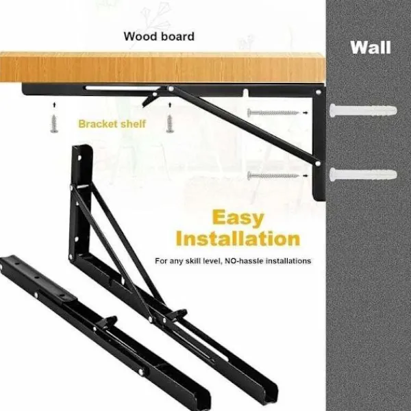 【Robust och slitstark】 Svart hopfällbar hyllkonsol är tillverkad av högkvalitativt rostfritt stål, tål dagliga repor och korrosion och behåller en ny glans. 【Platsbesparande】 Väggmonterade hopfällbara hyllkonsoler kan låsas i 90 grader. När du vill fälla ihop bordet trycker du bara på avlastningsarmen. Utmärkt prestanda, lämplig för trånga utrymmen, hjälper till att hålla ditt rum städat. 【Lätt att installera】 Hopfällbara hyllkonsoler kan installeras på alla typer av väggar utan att skada väggen. Du behöver bara se till att de två hopfällbara vägghyllorna är parallella med varandra och vinkelräta mot väggen. Du kan bygga en hopfällbar hyllkonsol eller ett litet väggmonterat hopfällbart skrivbord för ditt hem eller garage. 【Storlek och förpackning】 Svarta hopfällbara konsoler 50 x 17 cm (20 x 6,7 tum), komplett med monteringstillbehör, högkvalitativa skruvar i rostfritt stål och högkvalitativa väggpluggar, så du behöver inte köpa annan hårdvara och delar för att installera den. 【Används i stor utsträckning】 Svarta hopfällbara konsoler är perfekta för många hemförbättringsprojekt. Perfekt för butiker, husbilar, camping, bakgårdar, sovrum, kök, balkonger, badrum etc. Väggmonterade hopfällbara konsoler som kan användas som skrivbord, väggmonterat hopfällbart bord, kökshylla, väggmonterad arbetsbänk, trädgårdshylla, utomhusväggfäste etc.
