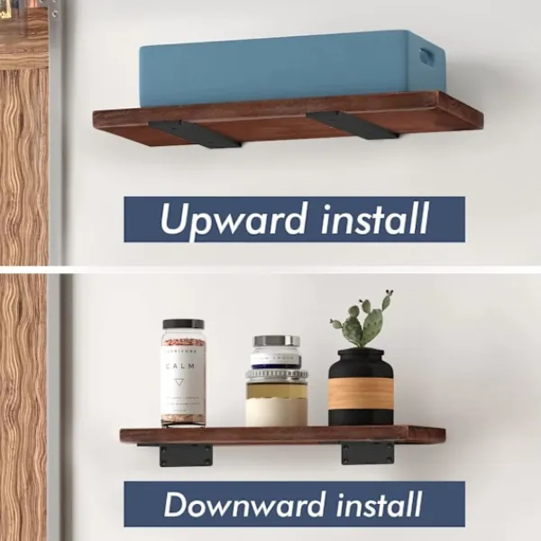 Två installationsmetoder: Våra flytande hyllkonsoler kan installeras uppåt eller nedåt, och det är säkert att oavsett vilken installationsmetod som väljs kan den enkelt utföras.