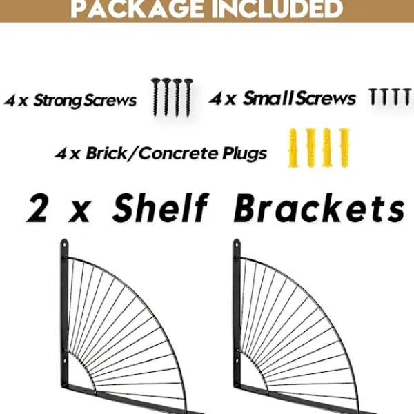 STORT MÄNGD PAKET FÖR MEST PRISVÄRT PRIS. Konsolpaketet innehåller 2 stycken guldhylla konsoler, 8 skruvar, 8 tegel/betongpluggar, hög kvalitet för att möta dina behov med lägre pris.
