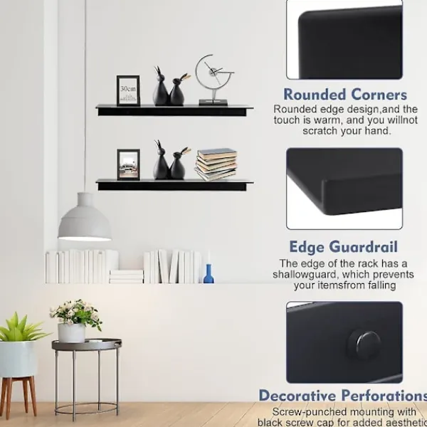 Brett användningsområdeDenna svarta metallvägghylla är lämplig för olika rum och applikationer. Du kan installera den i sovrum, kontor, vardagsrum, kök, badrum och andra kommersiella utrymmen för att visa olika föremål. Den 30 cm svarta vägghyllan med kant är perfekt för att visa konstverk, skivalbum, fotoramar, böcker och leksakssamlingar.
