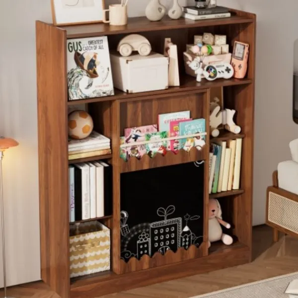 【Multifunktionell användning】 Med en inbyggd griffeltavla för att skriva och rita, låter den barn fånga idéer direkt och utveckla sina konstnärliga färdigheter medan de läser. Perfekt för vardagsrum, kontor eller studierum, den smälter sömlöst in i alla rum. Dess moderna design och rena linjer kompletterar olika inredningsstilar, vilket gör den till en praktisk och idealisk förvaringslösning för alla utrymmen.