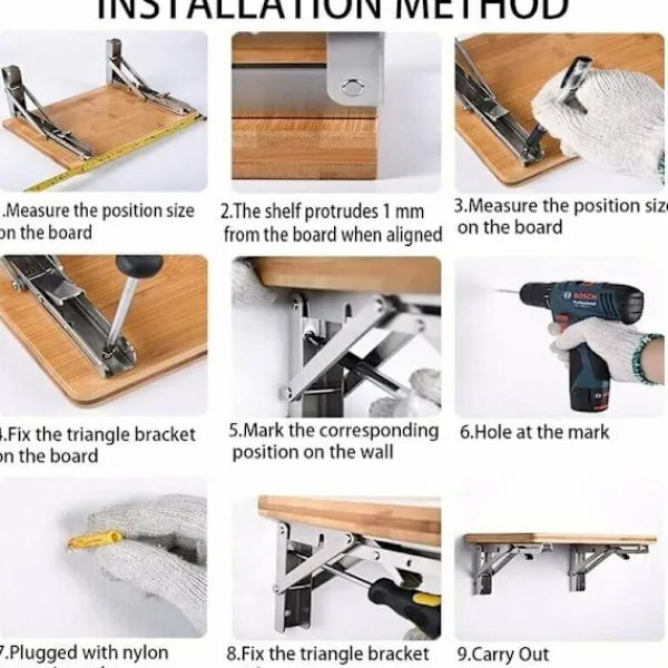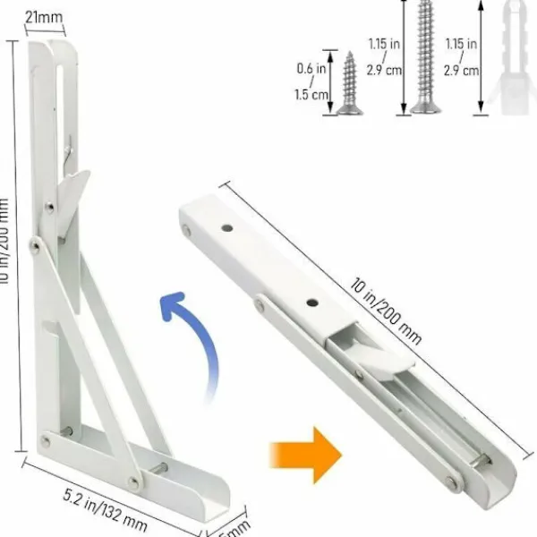 【Robust och solid】: Tillverkad av polerat rostfritt stål av hög kvalitet med en slät, solid yta och exakt funktion. För ett bättre boendeutrymme – Ditt hem blir mer städat och ordningsamt efter att du placerat en trähylla på dessa fästen. 【Flexibel design】: När hyllfästet är utfällt är det en 90-graders triangel som stabilt kan bära hyllans vikt. Den kan fällas tillbaka när som helst med ett enkelt tryck på avtryckaren, med flexibilitet som sparar utrymme och hjälper till att hålla rummet städat. Den metalliska silverfärgen kan matchas med olika dekorativa stilar och ger en modern touch till ditt hem. 【Lätt att installera】: Även om du inte är bra på DIY är det enkelt att installera. Paketet innehåller lämpliga monteringstillbehör, högkvalitativa skruvar i rostfritt stål och expansionsrör. Du behöver bara se till att de två fästena är parallella med varandra och vinkelräta mot väggen. 【HUR MAN VÄLJER STORLEK】: Det rekommenderas att matcha partitionens djup med fästets längd för att säkerställa maximal lastkapacitet. Att förlänga partitionens djup ökar stödpelarens vridmoment. När vridmomentet ökar minskar lastkapaciteten (hävstångsprincipen).