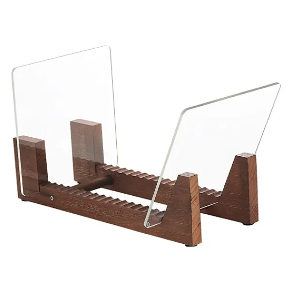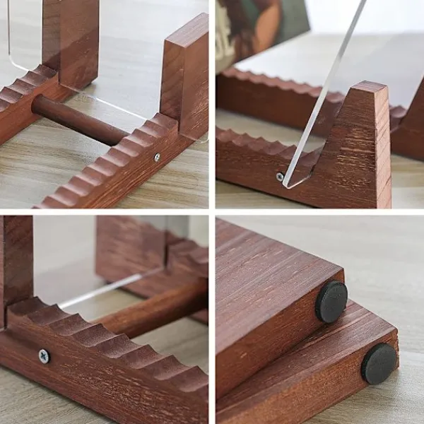 Robust och välbyggd: Den ribbade designen och 45 graders vinklar gör det enkelt att komma åt alla dina skivor samtidigt som de skyddas från att skeva och damma. Den räfflade botten håller dina skivor åtskilda och förhindrar att de glider ihop till en stor hög. Vi har lagt till en träpinne mellan de två träbitarna. Du kan dra åt den med skruvar för att säkerställa att skivstället är starkare och mer hållbart.