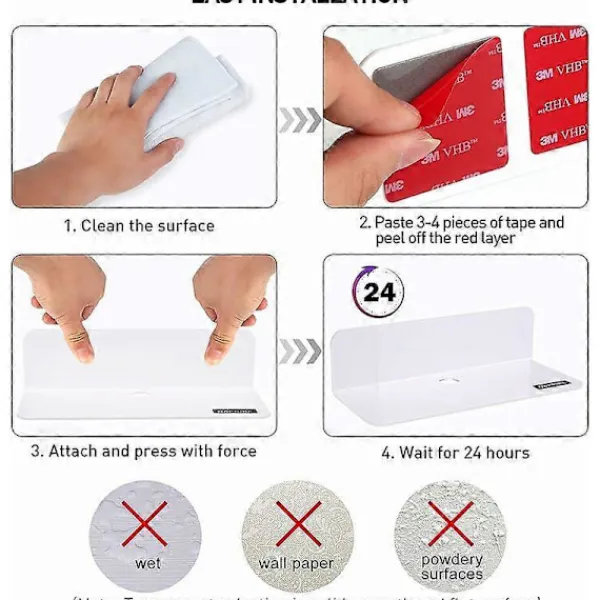 ENKEL INSTALLATION: Använder 3M-tejp, stark och vattentät, utan att borra i dina väggar, vilket kan användas enkelt och pålitligt i sovrum, vardagsrum, badrum, kontor, kök, barnrum, badrumsspel, garage, husbil, toalett och andra scener.
