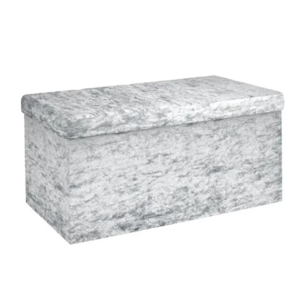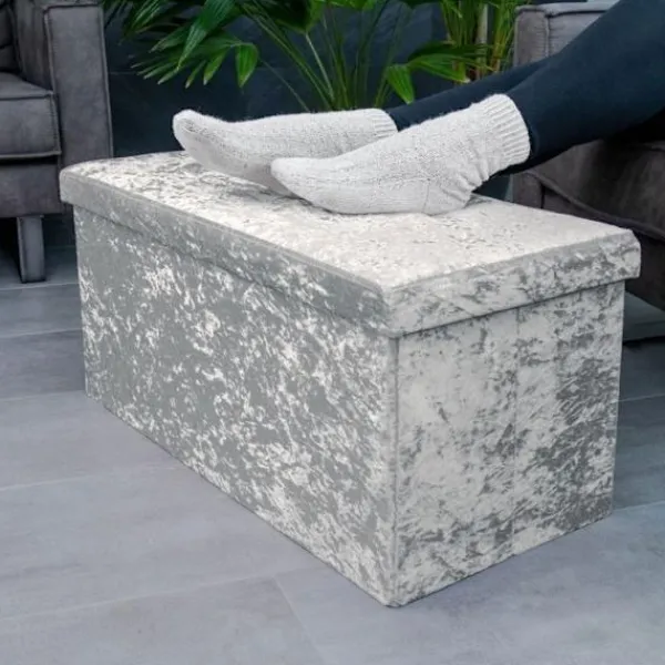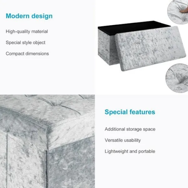 Den eleganta sammetsklädseln på utsidan och det mjuka tyget på insidan av denna praktiska vikbox / puff får den att se väldigt lyxig ut och garanterat dra blickarna till sig!