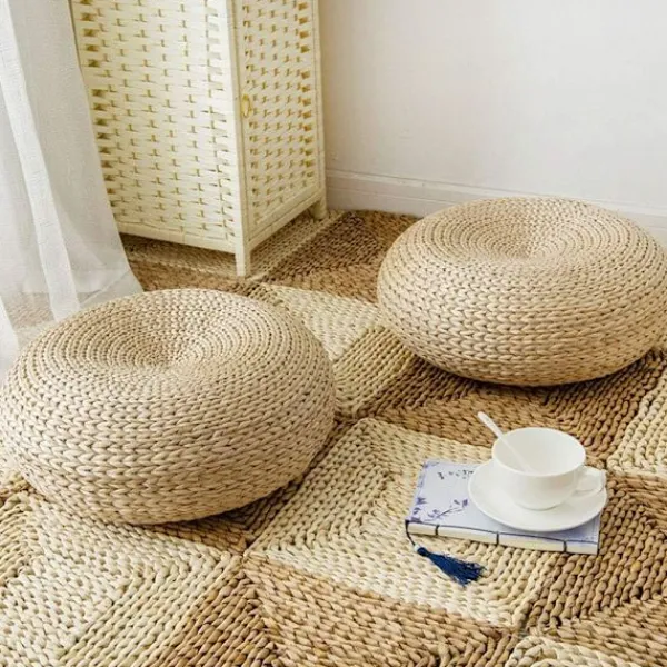 4. NATURLIGA MATERIAL: Denna bekväma kudde är gjord av bulrush, mattan behåller den naturliga färgen och växtens subtila struktur och doft bevaras.