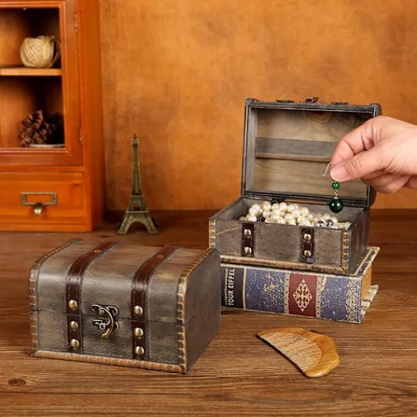 Den är inte bara lämplig för förvaring av smycken, vilket skapar ett rent och städat bekvämt utrymme, utan det eleganta och vintagehantverket gör denna skattkista också till ett utmärkt val för fotorekvisita.