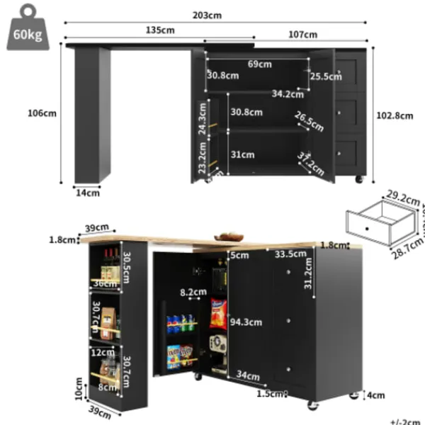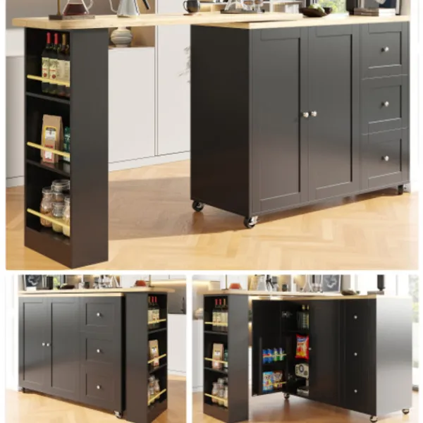 2. Utrymmesoptimering: De tre sidohyllorna och snackshyllan på ena sidan skapar smart ytterligare förvaringsutrymme. Kombinerat med de praktiska hjulen blir det ännu enklare att komma åt snacks, vilket enkelt uppfyller dina dagliga behov.