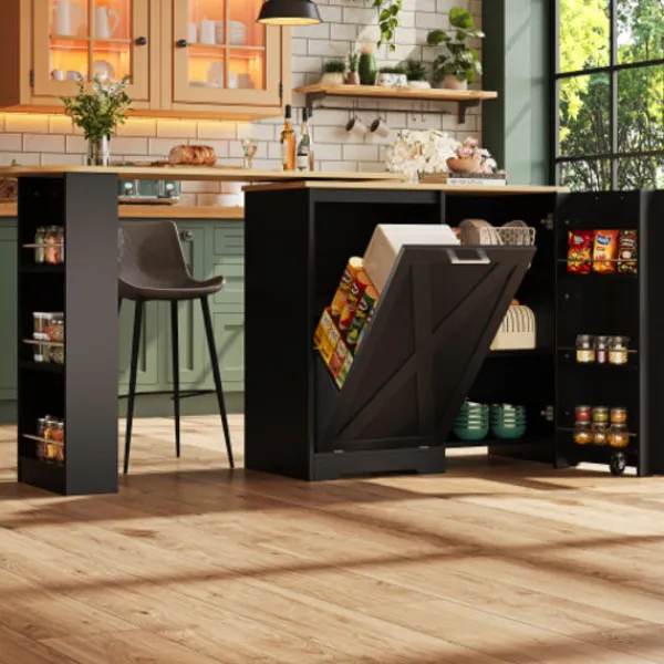 Multifunktionell förvaring: Lägg till sidohyllor och använd sidoutrymmet på stativet för att förvara vanliga föremål (som koppar, recept, små verktyg) för enkel åtkomst. Den unika fällbara dörrdesignen skiljer sig från den konventionella platta dörren, som tar upp plats: när du öppnar dörren behöver inte det främre rummet reserveras, och även små lägenheter kan öppnas och stängas enkelt