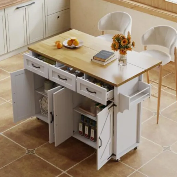 Effektiv och flexibel utrymmesutnyttjande: Den nedfällbara bordsskivan kan förlängas för att ge en arbetsyta på upp till 70 cm, vilket utökar arbetsområdet och förvandlar vagnen till ett barbord. En tvåpunktsstödkonstruktion säkerställer stabilitet och praktisk användning.