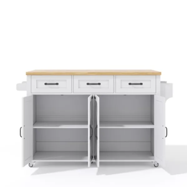 Mångsidig förvaringsdesign: Fyra dörrar, tre lådor och en dubbelsidig handdukshängare tillgodoser en mängd olika förvaringsbehov. Justerbara hyllor och en avtagbar vinglashållare möjliggör flexibel organisering och enkel åtkomst.