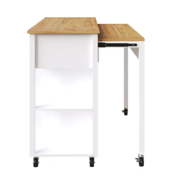 Utdragbar metallskena: Fullt utdragbar bordsskiva med ett metallskensystem. Sju hjul möjliggör enkel förflyttning och stabil positionering som skänk.