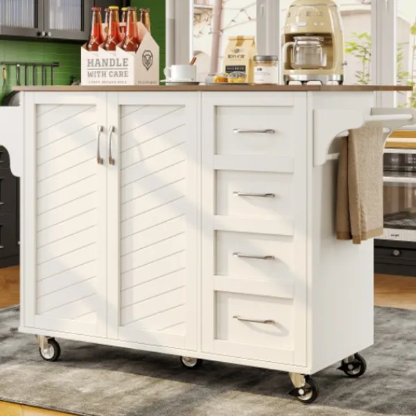 Bekväm förvaring: Denna besticklåda har 2 lådor (4 lådor), 2 skåp och är utrustad med ett kryddställ och handdukshängare, vilket ger gott om förvaringsutrymme för bestick, kryddor och andra köksredskap.