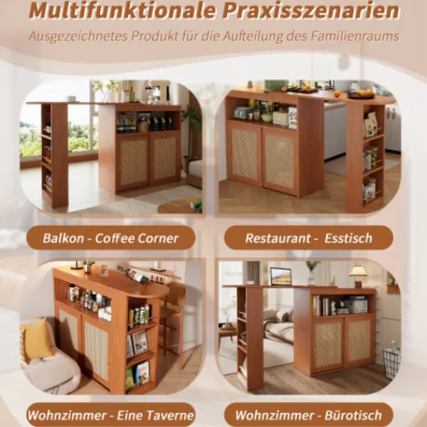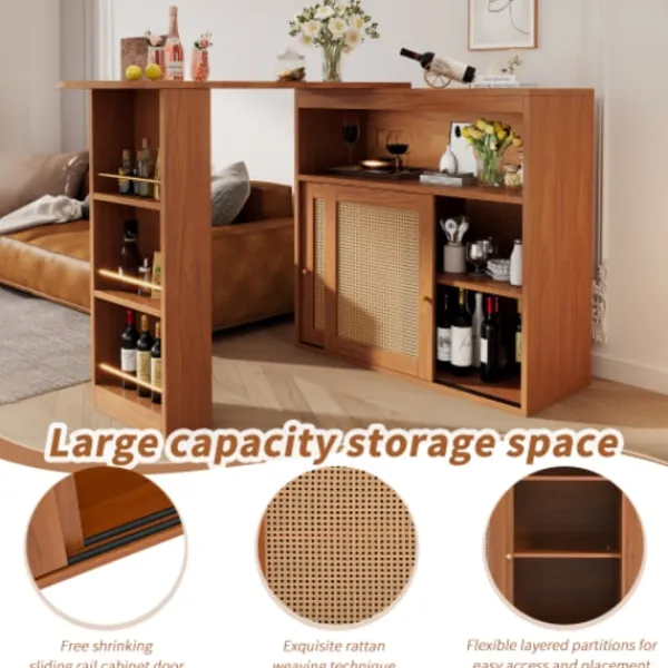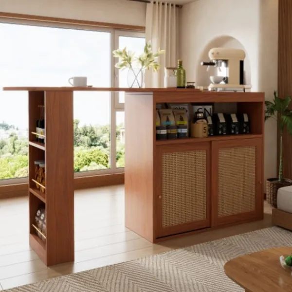 Rottinghantverk: Skåpdörren är gjord av utsökt rotting. Denna traditionella teknik ger inte bara matbordet en unik textur och en varm, naturlig atmosfär, utan visar också hantverkets finess och elegans.
