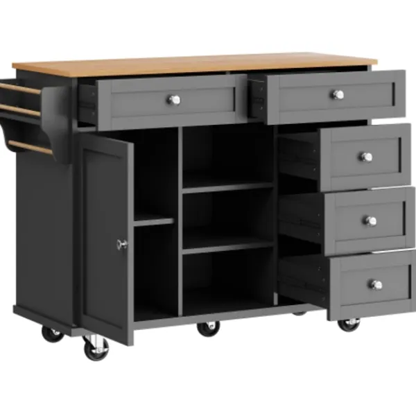 3. Uppdelad förvaring, snyggt och prydligt: Insidan av serveringsvagnen är rimligt utformad och föremål av olika höjd kan förvaras i separata zoner så att du enkelt kan klassificera och förvara olika köksredskap. Denna design förbättrar inte bara lagringseffektiviteten, utan utnyttjar också köksutrymmet fullt ut och gör ditt kök rymligare och ljusare.