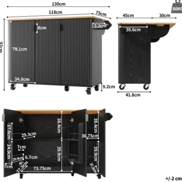 Produktstorlek: Köksöns längd 130 cm, bredd 45 (75) cm, höjd 92 cm, tillräckligt rymlig för användning i köket.