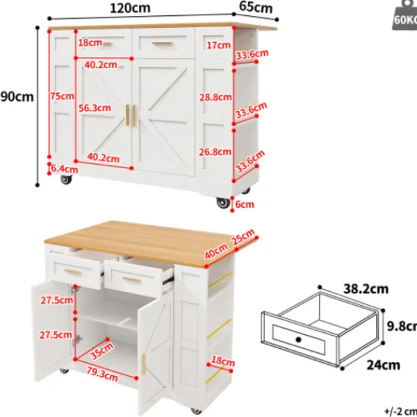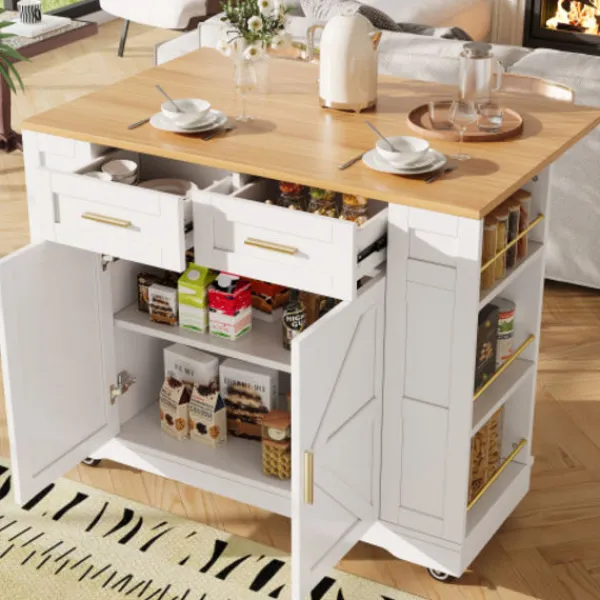 Rymligt förvaringsutrymme: med två praktiska lådor, extra stort förvaringsfack, solida hyllor och dubbelsidiga förvaringsutrymmen för korrekt förvaring av köksredskap.