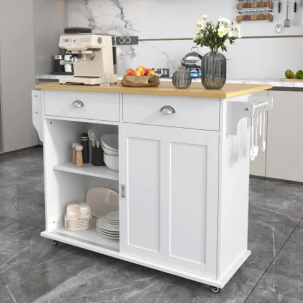 5. Fast förvaringsö: Denna köksö är också utrustad med fyra massiva träfötter. Om du inte behöver flytta detta skåp kan du byta ut rullarna mot skåpfötterna.