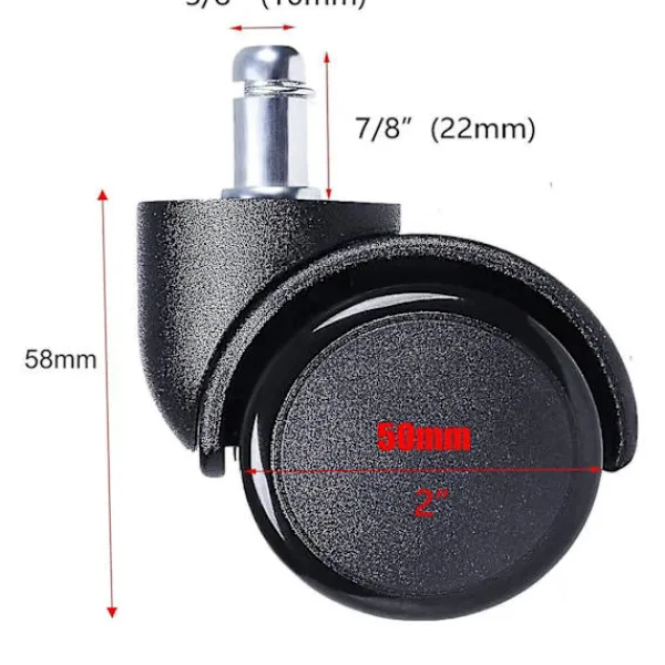 Stamstorlek: 3/8″ x 7/8″ (10mm x 22mm); Passar för kontorsstolar med 10mm x 22mm. Stamen är mindre än vanliga 11mm stam-rullhjul.