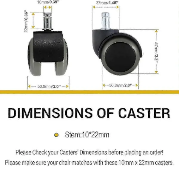 Perfekt för alla golv: Dessa hjul är tillverkade av nylongummi och är gjorda för att skydda trägolv, laminat, kakel, skiffer och alla andra hårda golv från skador och repor.