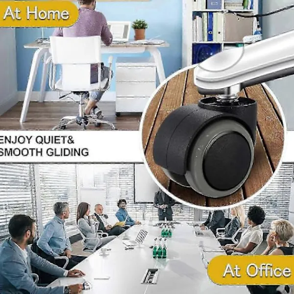 Smidiga och tysta: Smidig och tyst glidning är prioriteterna för kontorsstolshjul. Dessa hjul är mycket flexibla när du rullar stolen; inget mycket ljud med premiumgummi, ett utmärkt val för kontoret.
