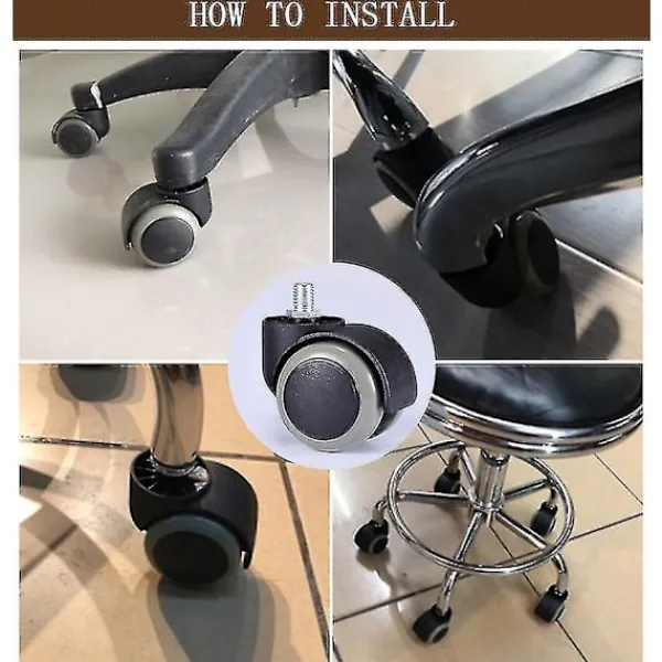 Specifikationer:Helt nyProdukt stolshjulMaterial: stål+gummi+plastFärg: som bildTyp: inbäddad typ (lämplig för 10 mm ventilstam)Hjuldiameter: ca 50 millimeter (2 tum)Stil: minimalistisk/europeisk/klassisk.Funktioner: Lämplig för alla kontorsstolar.Lätt att installera, golvskydd, ergonomisk design, smidig drift, lätt att glida och rotera.Förpackningen innehåller:5 kontorsstols hjulObs:Se de detaljerade måtten på följande bilderSe till att du förstår hur du mäter dina behovOm du är osäker på vilken storlek du behöver, vänligen kontakta vår kundtjänst.På grund av manuell mätning, vänligen tillåt mindre avvikelser.På grund av skillnader mellan olika bildskärmar, kanske bilderna inte återspeglar objektets faktiska färg.