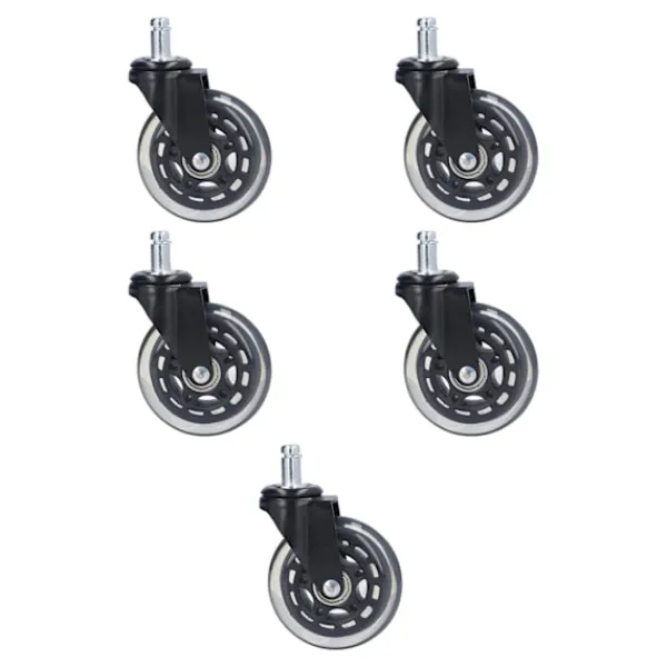1, Utan repor: Hjulen är lämpliga för mattbelagda golv, kakel och trägolv, som inte repar dem, du kan använda med förtroende 2 、 Tyst Rullning: Designad med roterande lager som roterar mjukt i 360 grader, detta hjul rullar tyst och ljudlöst på nästan alla ytor 3 、 Stark och hållbar: Tillverkad av slitstarkt polyuretangummi, hjulet har stark bärförmåga, kan bära 100 pund vikt, starkt och hållbart 4 、 Lätt och snabb installation: Hjulen är enkla och bekväma att installera, inga verktyg krävs, bara att fixera med handen 5 、 Bra ersättning: Detta set innehåller 5 hjul för att ersätta trasiga, uppgradera ditt skrivbord, dator och spelstol avsevärt passar de flesta stolar