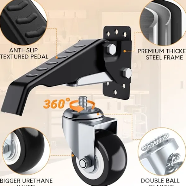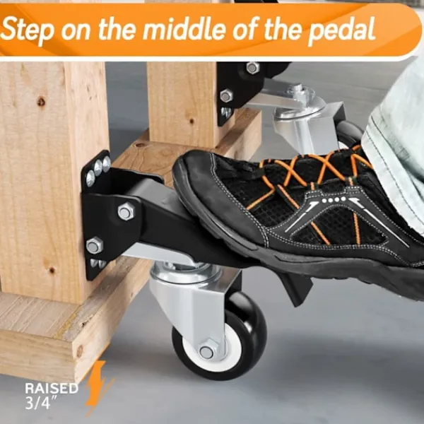 【Enkel användning】Varje lyftpedal har en ribbad textur för att ge extra grepp när du applicerar fot tryck. Trampa helt enkelt på pedalen för att lyfta arbetsbänken från marken. När den väl är lyft kan du flytta arbetsbänken, bordet eller maskinen efter behov.