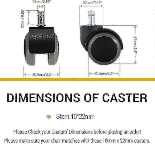 Kontorsstolshjul, 5-pack, passar IKEA-stolar (10mm x 22mm) Heavy Duty JR2025032601188. Passar ENDAST IKEA-stolar: Se till att hjulstammens storlek är 10*22mm, annars passar inte dessa ersättningshjul din stol.