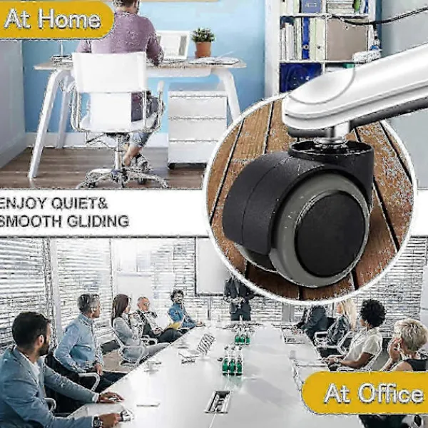 Smidigt och tyst: Smidig och tyst glidning är prioriteterna för kontorsstolshjul. Dessa hjul är mycket flexibla när du rullar stolen; inget mycket ljud med premiumgummi, ett utmärkt val för kontoret.