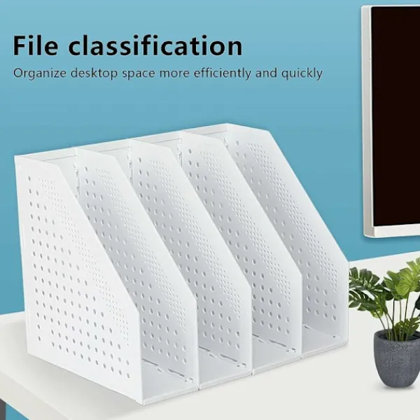 4 .Tidskriftshållaren innehåller 4 fack, som kan hålla böcker på plats, förhindra att böcker flyttas, klassificera och organisera dina böcker och dokument, vilket ger dig snabb åtkomst till ofta använda filer och gör skrivbordet mer prydligt.