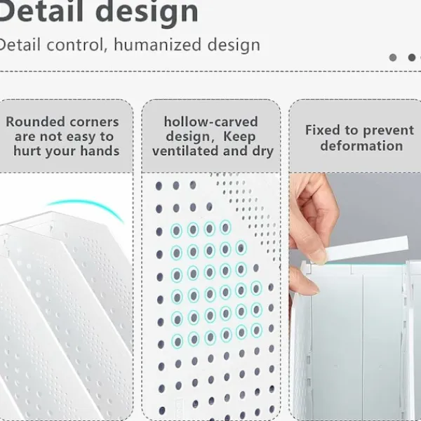 3.Arkiveringskorgen antar hopfällbar design, du kan vika den till 2, 3 eller enskilt fack för att passa kontors- och bokhyllutrymmet, särskilt lämplig för begränsat lagringsutrymme, utan några begränsningar, sortera och sortera dokument snabbt.