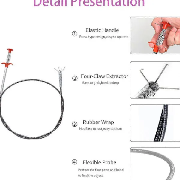 Bred användning: klo-tängerna glider lätt genom smala rör tack vare grip-tänger, idealisk för att greppa under möbler, i sprickor och i avloppsrör, men också som ett hjälpmedel hemma för att lättare kunna greppa högre föremål.”