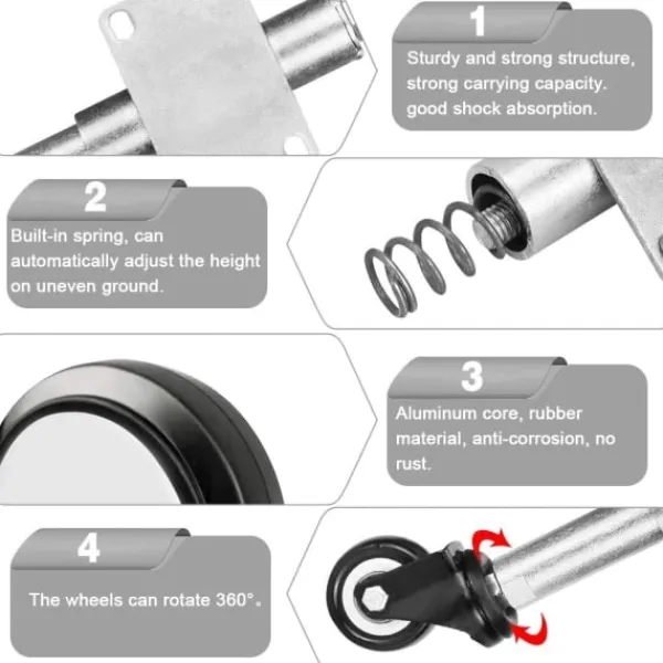 Grindhjul, Länkhjul, Grindstamhjul, 2 tum PU Grindhjul Möbelhjul Fritt laddade fjädersvängbara hjul, Svängbara hjul med broms för grindmöbler Bordsvagn