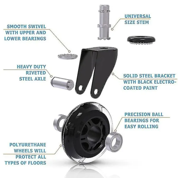 Våra ersättningshjul för skrivbordsstolar kommer ALDRIG att repa eller skada dina golv.