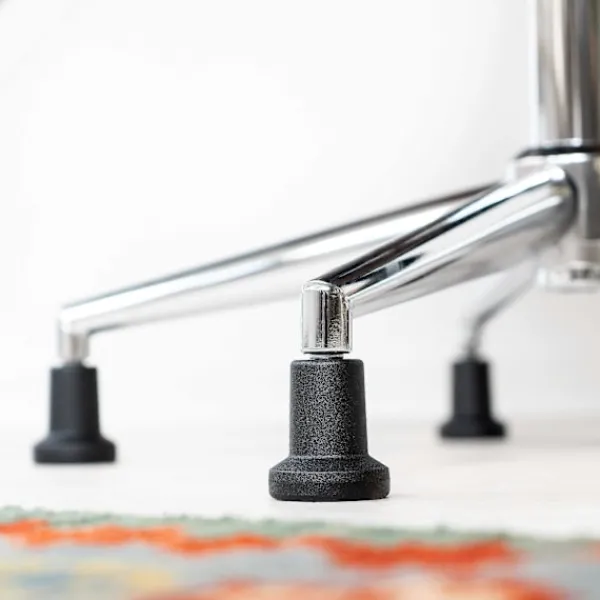 SKYDD: De fasta ändstyckena fungerar som gummiskydd för alla dina golv. De är designade för att användas på en hård yta: parkett, linoleum, laminat, kakel, etc. ENKEL INSTALLATION: Inga verktyg krävs för montering. Ta bort hjulen från sätet och fäst fötterna på plats.
