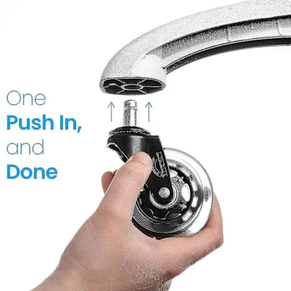 Office Chair Wheels Replacement Rubber Chair Casters For Hardwood Floors Feature: Our desk chair wheels replacement will NEVER scratch or damage your floors. Enjoy a carefree, safe glide across wood, hardwood, laminate, vinyl, tile and carpet floors all day long. Rest assured knowing that our computer chair wheels replace the wheels on almost any rolling chair Most customers say our wheels are better than the original ones Due to the screen display, and the shooting light is different, there may be a little color difference Please allow 1-3cm error for manual measurement, thank you Package Include: 1xCasters